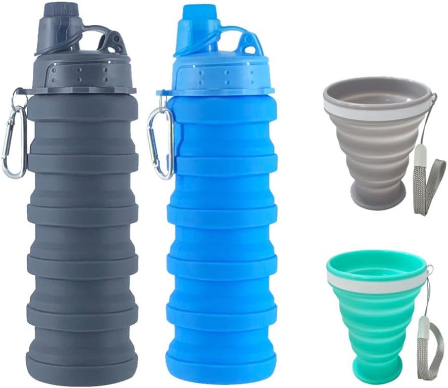 Collapsible Water Bottles 500 ml with silicone collapsible cup 200 ml.Travel Water Bottle Portable Hiking Water Bottle Reusable BPA Free Silicone Water Bottles. (Colorful2)